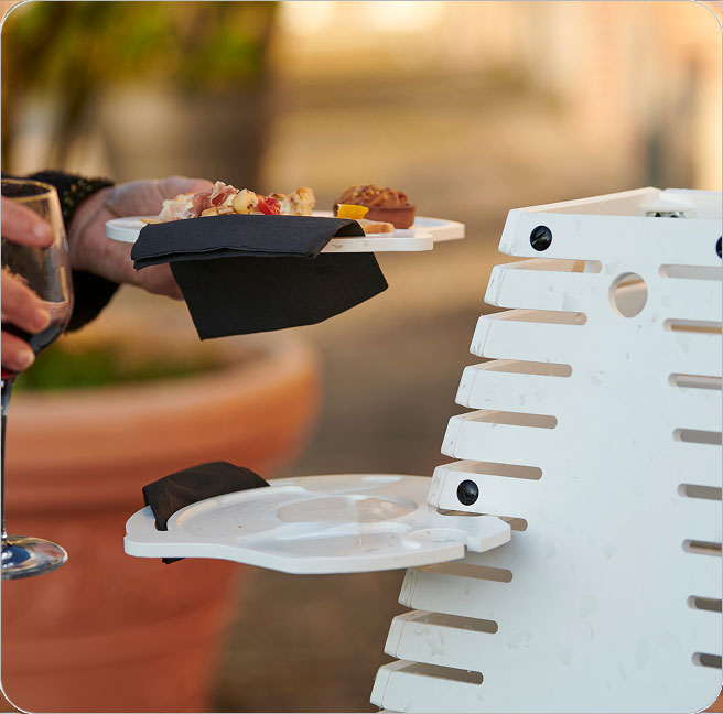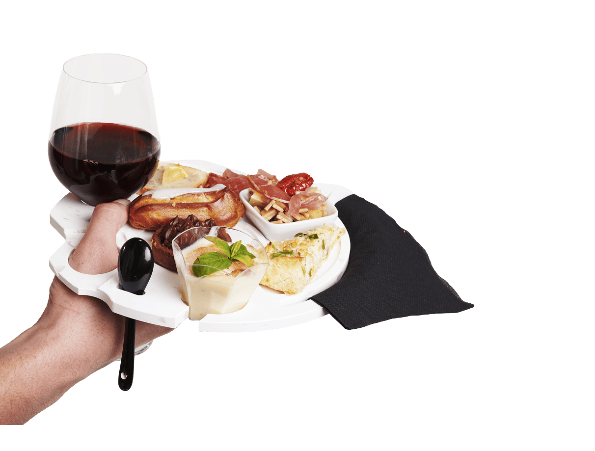 PAAMBI est une palette cocktail ergonomique permettant à vos invités de tenir verre, bouchées et serviette d’une seule main. Résultat : une réception plus fluide, un service plus simple et une expérience invitée sans contrainte.