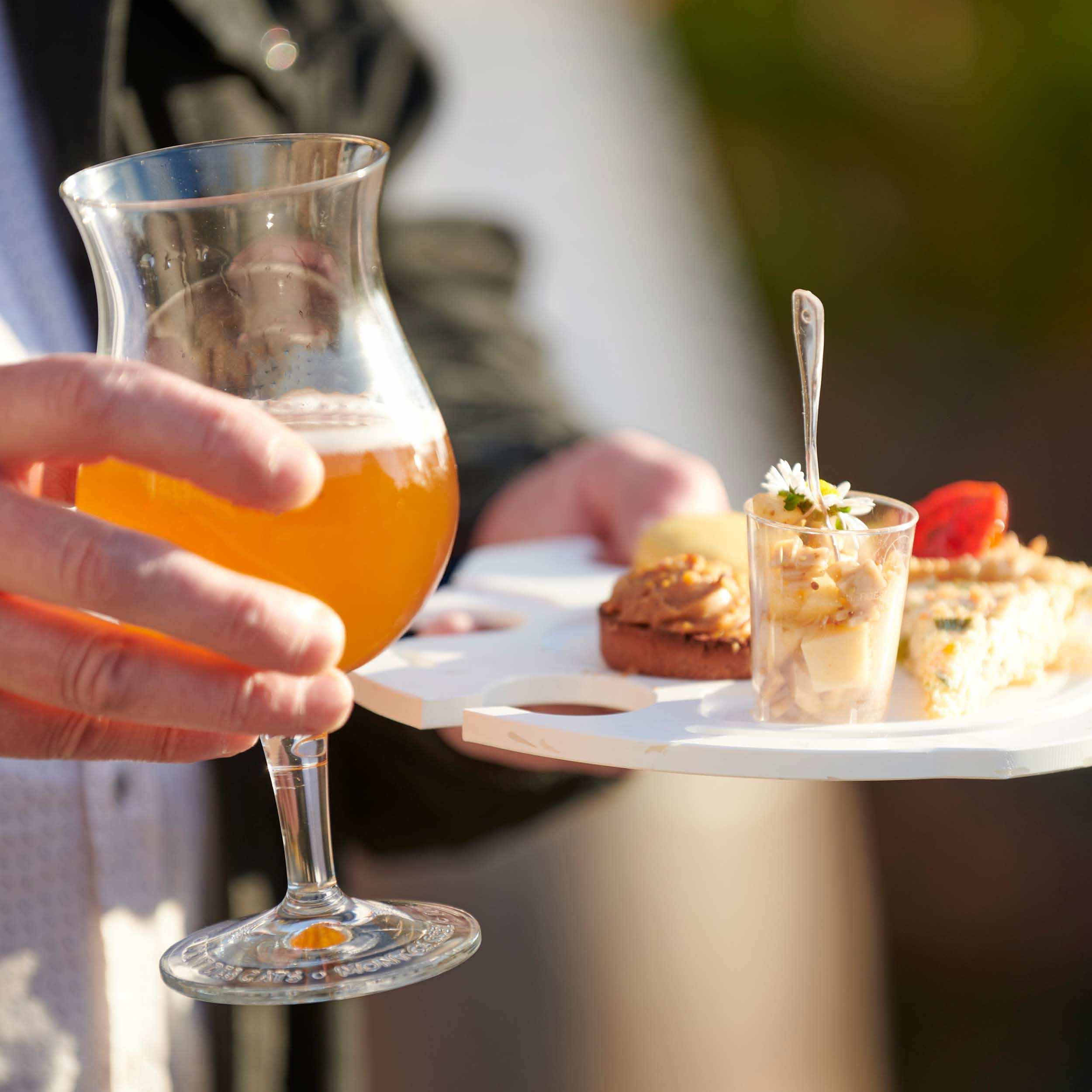 Oui. La palette cocktail PAAMBI est conçue pour accueillir verres à pied, flûtes, gobelets, verrines, serviettes, pièces salées et sucrées. Elle est polyvalente et ambidextre, s’adaptant à tous les usages.
